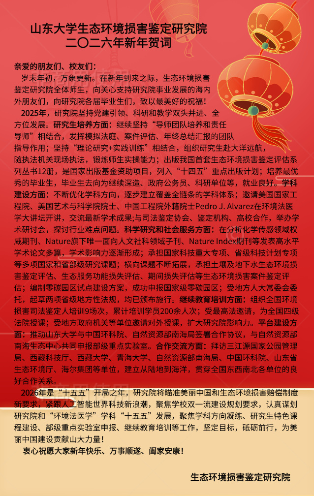 山东大学生态环境损害鉴定研究院2026新年贺词