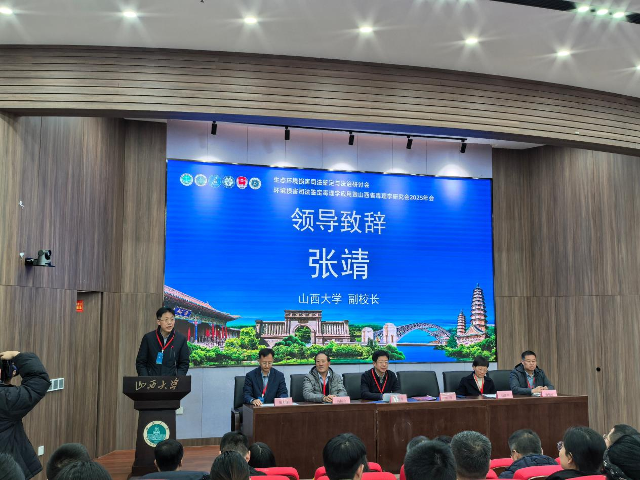 张靖在致辞中指出,本次会议紧扣国家生态文明建设与法治建设重大需求,对推动生态环境损害司法鉴定技术进步、促进学科交叉融合具有重要意义。山西大学长期重视生态环境与毒理学研究,希望以此次会议为契机,加强高校、科研院所与司法部门的深度协作,共同提升生态损害鉴定能力与科技支撑水平,为区域生态保护和高质量发展贡献更多智慧与力量。
