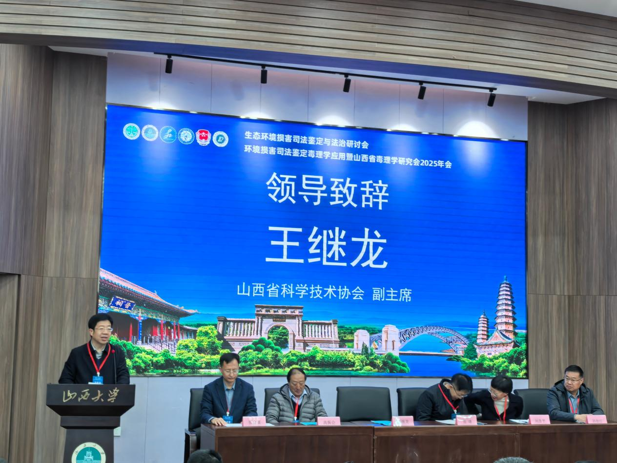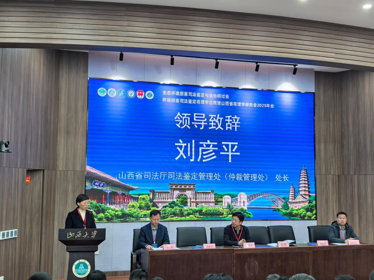 2025年11月22日,由山东大学生态环境损害鉴定研究院、山西大学环境与资源学院与山西省司法鉴定协会联合主办的“生态环境损害司法鉴定与法治研讨会暨山西省毒理学研究会2025年会”在山西省太原市顺利召开。中国科学院院士、山西大学副校长张靖、山东大学生态环境损害鉴定研究院院长高振会、山西省科学技术学会副主席王继龙、山西省司法厅司法鉴定管理处(仲裁管理处)处长刘彦平、山西省司法鉴定协会会长孙俊红、山西省毒理学研究会理事长张全喜出席并致辞。